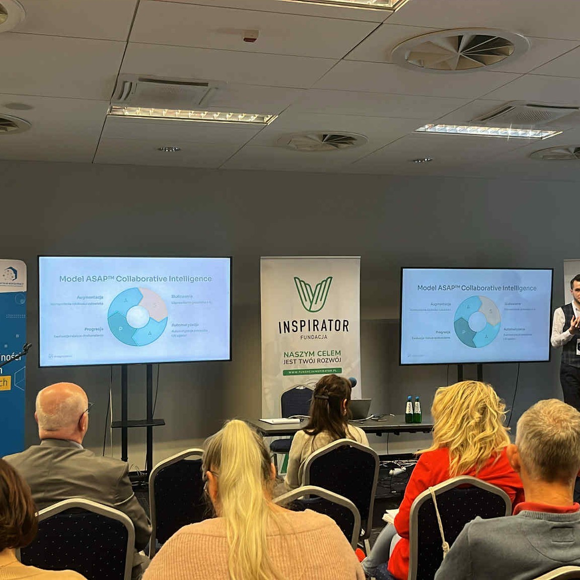 Podczas spotkania „Jak wdrażać AI w firmie – metodyka ASAP Collaborative Intelligence”, nasz CEO Michał Gumkowski (CEO Progression) podzielił się praktycznym spojrzeniem na wdrażanie sztucznej inteligencji w realiach MŚP.